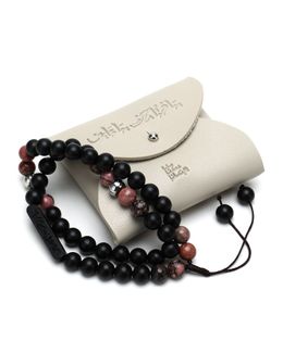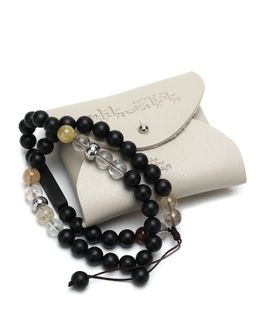 مادة صنع الخرزات لكل سبحة: الفيروز الأفريقي، حجر سوداليت، حجر الرودونايت الأسود والزهري، حجر الكوارتز روتيل.